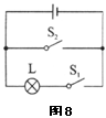 2.电路状态:电路有 三种状态;如图8所示电路,当开关S1、S2断开时,电路处于 状态;当S1闭合、S2断开时,电路处于 状态;当开关S1、S2都闭合时,电路处于 状态。