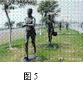 绵延在厦门环岛路上的“永不止步”群雕,将马拉松比赛的场景永远定格在这条世界上最美丽的赛道上(图5)。雕像的大小跟真人差不多,小明通过上网查询到每尊雕像的质量约200kg。请您估算这尊雕像的平均密度约为( )