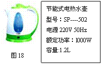 23,如图18是家庭、宾馆常用的电热水壶及其铭牌。