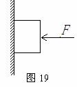 24.如图19所示,F=50N,水平向左作用在紧贴着竖直墙面的物块上,物重20N,物块与墙接触面积为200cm2,则墙对物块的摩擦力为_____________N,物块对墙压强为_____________Pa。