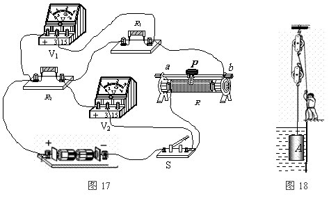 38.在图17所示的实物电路中,电源电压保持不变,电阻