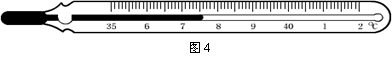 10、常用液体温度计的测温原理是利用________________________的性质。如图4所示的温度计的分度值为____________。