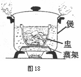 40、“炖”菜是鹤岗人喜欢的一道美食,最好的“炖”菜是应用煮食法,即把汤料和水置于炖盅内,而炖盅则浸在大煲的水中,并用蒸架把盅和煲底隔离,如图18所示,当煲中的水沸腾后,盅内的汤水是否能沸腾?为什么?(设汤水的沸点与水的沸点相同)