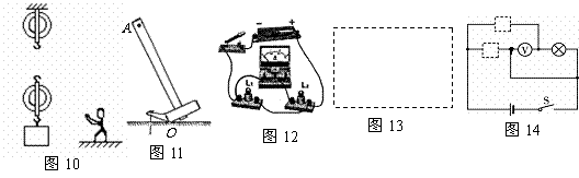 20、在实验室,小宇连好了一个如图12所示的电路,请你在图13的虚线框中画出这个电路的电路图。