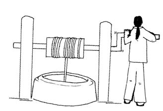 (1)辘轳就是轮轴的一种,它的侧面图如图所示,辘轳也可以看成是杠杆的变形,辘轳绕着转动的轴心就是支点,辘轳的把手转动一圈就是如图所示的轮,作用在把手上的力为动力F1,井筒对轴向下的拉力是阻力F2,请在辘轳的侧面图上画出辘轳的杠杆示意图。通过示意图可以发现辘轳是_________杠杆.
