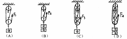 16.用相同质量的滑轮,装配成以下滑轮组匀速地提起重物,不计轴心处摩擦且每个重物质