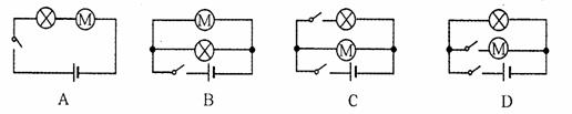 教室里投影仪的光源是强光灯泡,发光时温度很高,必须用风扇给予降温。为了保证灯泡不被烧坏,要求:带动风扇的电动机启动后,灯泡才能发光;风扇不转,灯泡不能发光,则以下所设计的四个简化电路图中符合要求的是