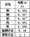 16.图中列出了一些材料制成的长1m、横截面积为1mm2的导线在20℃时的电阻值.若架设一条输电线路,在铝线和铁线之间,你应选用 ;假如要选用一根金属丝来做滑动变阻器的电阻丝,在镍铬丝和锰铜丝之间,你应选用 .
