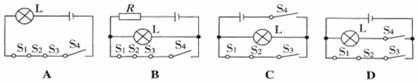 8.小轿车上都装有一个用来提醒司机是否关好车门的指示灯.四个车门中只要有一个门没关好(相当于一个开关断开),该指示灯就会发光。如图所示的模拟电路图符合要求的是:( )