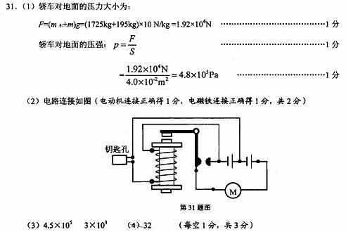 30. (1)两船同时等速排水(1分)因桥的重力由两只船承担,而两船所处的位置是对称的,故两船对桥的作用力相同,所以每只船应排出l40吨水。(1分)