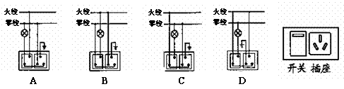 7.家庭电路中需要安装一个“一开三孔”开关(即一个开关和一个三孔插座连在一起),要求插座能单独使用,开关能控制电灯且符合安全用电原则。从实物正面观察,图3所示的几种接线中符合要求的是