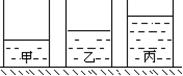 9、如图4所示,三只相同的烧杯中,分别装有质量相等的水、煤油和硫酸,已知ρ酸>ρ水>ρ油,则