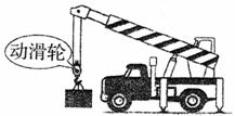 (8分)中国移动公司的抢险队作为第一支到达灾区的移动通信抢险队,队员们用鲜血和生命架起了一条条抗震救灾的无形生命线,为抗震救灾提供了强有力的通信保障。如图13所示,在通讯线路的抢修现场,起重机正将一箱箱设备吊装到3m高的施工台上,其中起重臂下的钢绳是绕在一个动滑轮上的,若每箱设备均重4000N,施工台距地面的高度为3m,如果起重机沿竖直方向匀速提升一箱设备时,动滑轮上每段钢绳的拉力为2500N,在忽略钢绳重和摩擦的情况下。