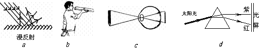D.图d表示太阳光经过三棱镜色散后的色光排列情况
