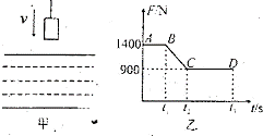 4、(2008四川自贡)在图4甲中,石料在钢绳拉力的作用下从水面上方以恒定的速度下降.直至全部没入水中。图4乙是钢绳拉力随时间t变化的图像,若不计水的摩擦力,则可算出该石料的密度为 (g=10N/㎏)