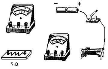 [器材] 1.5V的干电池两节,阻值分别为10Ω、12Ω、15Ω电阻三个,电流表、开关各一个,导线若干。