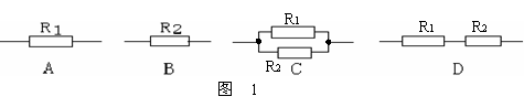 2.将R1、R2(R1> R2)按照图1中四种不同接法接在同一电源上,总电流最大的是:![]()