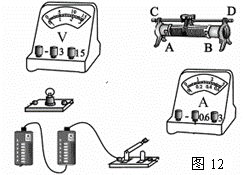 18.小雷利用伏安法测量额定电压为2.5V的小灯泡正常发光时的电阻。已知电源两端的电压为3V,请帮助小雷将如图12所示的电路连接完整。