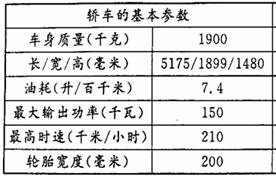 20.小林的爸爸最近购买了一辆四轮轿车,下表是该轿车说明书的部分数据。