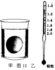 ③用密度计(图18乙)测量盐水的密度ρ盐水,则鸡蛋的密度ρ鸡蛋=ρ盐水。