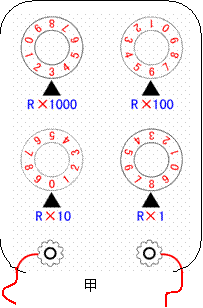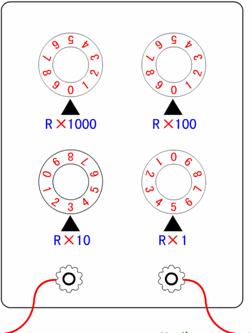 滑动变阻器能够改变连入电路的电阻,但不能表示出连入的阻值。能够表示出阻值的变阻器叫做变阻箱。图19甲是实验室用旋盘式电阻箱的面板。上有两个接线柱、四个旋盘。使用时,把两个接线柱接入电路,调节旋盘就能得到0-9999Ω之间的任意阻值。各旋盘对应的指示点(图中的小三角)的示数乘以面板上标记的倍数,然后加在一起,就是接入电路的阻值,例如,如图19甲所示电阻箱的示数为3608Ω。