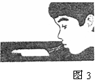 (2)如图3所示,把一张半卷着的硬纸片摆放在桌子上,如果使劲吹一下它的下面,可以发现硬纸片不会翻转过去。这是因为流体的压强与流体流动的