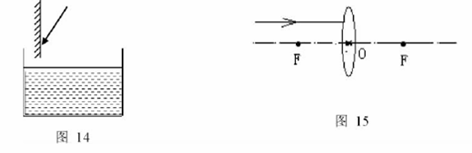 18.(1)如图14所示,S发出的一条入射光线射到竖直放置的平面镜上发生反射,进入水中又