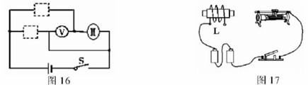 19.(1)如图16所示,请在方框内分别填入小灯泡和电流表的元件符号,使小灯泡和电动机都