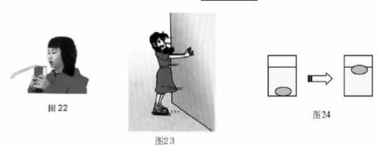 (3)如图24所示,将鸡蛋放进水中,鸡蛋是下沉的;往水中不断加盐,一会,鸡蛋就会在盐