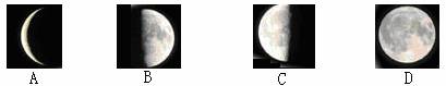 4、今年公历5月1日,农历四月初七。下列图片中可以表示此月相的是---( )