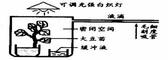 31.(8分)利用下列装置研究CO2含量和光照强度对大豆光合作用的综合影响。 实验时使用生长发育状况一致的大豆植株在室温250C下进行。对各组试验装置精确测量的液滴移动数值记录于下表。根据图表分析回答:(提示:缓冲液能吸收多余的CO2 )