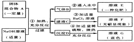 (3)混合物A中,肯定存在的物质是(写化学式) 。