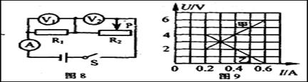 变阻器,两电压表的示数随电路中电流变化的图线如图9所示。根据图线的信息可知: