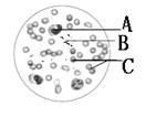 (2) 上图(二)中的A、B、C 是视野中观察到的三种血细胞,其中能保护身体抵抗细菌等侵袭的是 ,煤气中毒是因为CO与其中的 上的某种物质牢固结合所致。