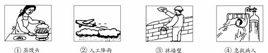 下列四幅图若按氧气、干冰、熟石灰和纯碱的用途排序,正确的是