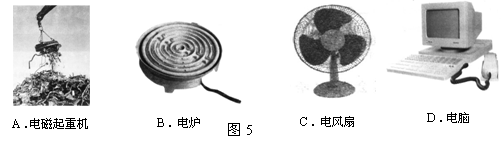 5.在图5所示的电器中,利用电流的热效应来工作的是