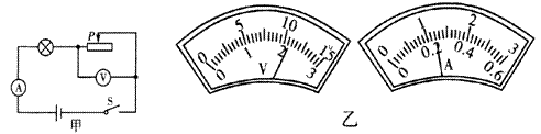 如图甲所示的电路中,电源电压保持4.5V不变,电压表量程为“0-3V”,电流表量程为“0-0.6A”,灯泡上标有“6V,3W”字样。闭合开关,将滑片P滑到某-位置时,电压表和电流表的示数如图乙所示。则下列说法错误的是