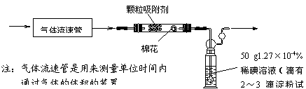 ⑴为测定某地方的空气中SO2和可吸入颗粒的含量,查阅资料得知:可用含有一定量碘的溶液测定空气中的SO2含量,反应方程式是:SO2+I2+2H2O=H2SO4+2HI。甲同学设计了如下图所示的实验装置: