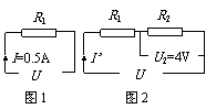 解:(1)电路中的总电阻为:R=R1+R2=15Ω+5Ω=20Ω 1分