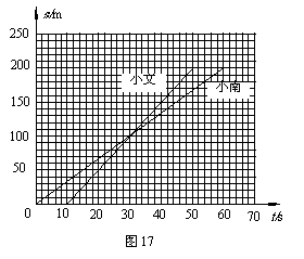 30. 如图17所示,是小文和小南运动的路程与时间关系图线。依照示例再写出两条有关的信息。示例:小南运动的速度为3.3m/s;
