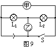 12.在如图9所示的电路中,甲、乙两电表可能同是电流表,也可能同是电压表。已知当开关S断开时,两灯均发光,此时甲、乙两电表的示数之比为2∶3。若将甲、乙两电表同时换成另一种电表,开关S闭合后两灯仍均发光,则此时甲、乙两电表的示数之比及灯泡L1和L2消耗的功率之比分别为(不计温度对灯丝电阻的影响) ( )