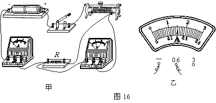 (1)当电压表示数为2.4V时,电流表的示数如图16乙所示,这时电路中的电流是________A,电阻丝的电阻值值为________Ω。