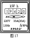 小明家有一个电饭锅的铭牌已模糊不清,他想知道其处于加热状态时消耗的电功率,于是他关闭了所有的家用电器,记录电能表的示数是1961.6度,只将这个电饭锅接入家庭电路中,使其处于加热状态工作30min后,电能表示数如图17所示,则在这30min内电饭锅耗电________度,此电饭锅处于加热状态的功率为 W。