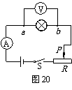 26.小明想用电流表、电压表测量电阻丝R的电阻值,实验电路如图16甲所示。