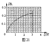 33.小明通过实验研究小灯泡灯丝电阻随其两端电压的变化情况。实验时使用的是额定电压为2.5V的小灯泡,通过实验测出了若干组灯丝两端的电压和通过灯丝的电流,并根据实验数据画出了如图21所示的图象。由图象可知,灯丝两端电压为2V时,通过灯丝的电流为 A,此时灯丝的电阻为_______Ω;在实验过程中,随着小灯泡两端电压的变大,小灯泡灯丝的电阻值_______(选填“保持不变”、“变小”或“变大”)。