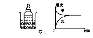 (08佛山)如图1右所示把凉牛奶放在热水中加热,经过一段较长时间,它们的温度随时间变化的图像如图1左所示,下列说法中正确的是:( )。