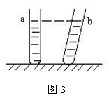 7.两支相同的试管内,装有质量相等的不同液体,a管竖直放置,b管倾斜放置,此时两管内液面处于同一水平位置,如图3所示.则管底受到液体的压强是( )