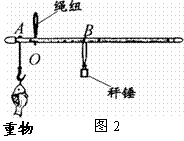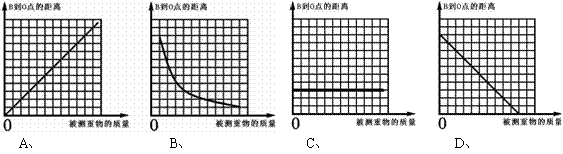 8.如图2所示,绳纽悬吊着质量忽略不计的杆,测量重物质量时挂钩将下挂不同的重物,要使杆保持水平,“B到O的距离”和“被测重物的质量”的关系应该是下图中的:
