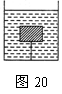 40.如图20所示,容器中装有水,水中有一个木块被细线系着,已知水重200N,水深为0.5m,木块的体积为4dm3,木块的密度为0.6×103kg/m3,试求:(1)水对容器底面的压强是多少?木块受到的浮力是多大?