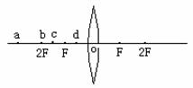 (1)当蜡烛位于a、b、c、d四点中的 点时,在透镜右边的光屏上(光屏未画)能承接到清晰、缩小的像,生活中____________就是利用此成像特点制成的。